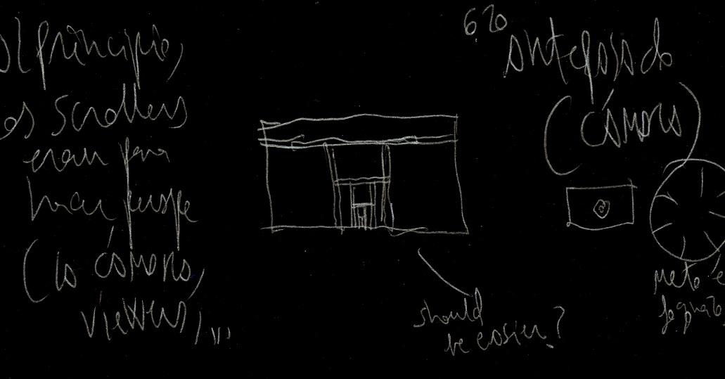 según un pequeño cuaderno-diario de trabajo escrito en los primeros meses de confinamiento en 2020, el trabajo en scrollers se comienza a mediados de mayo. se dedica un buen tiempo a organizar los gifs, pero al parecer pronto se abandona: los resultados no son como se esperaba. sin embargo, en aquel momento no éramos conscientes del potencial de desarrollo que aquella experiencia encerraba. |
