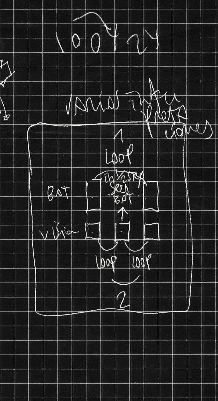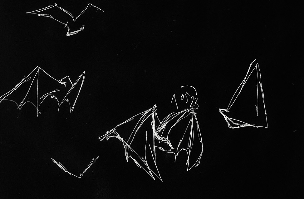 GRUPO 013: (solo tiene un componente) 27 de marzo de 2024: seleccionamos los fotogramas con los que vamos a trabajar. y nos encontramos con otro murciélago. sobre el incipiente argumento del antiscroller, pensamos en montar un fondo desarrollable artificial detrás del elemento móvil. 28 de marzo de 2024: el fondo se organiza con la parte disponible de los fotogramas, como una pantalla-panorámica sobre la que montamos el móvil sin mucho trabajo de recorte. todo intento de reducir el umbral de grises falla, así que al contrario de los dos primeros grupos, se decide no alterar la tonalidad de las imágenes. 29 de marzo de 2024: organizamos la secuencia del sueño y montamos el habitáculo en p5.js, de nuevo con arrays. |